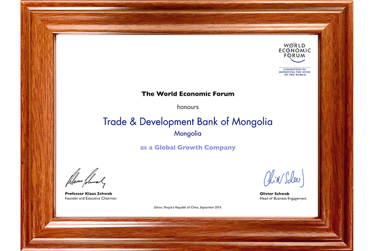 During the annual meeting, the WEF announced its selection of Global Growth Companies (GGC) and the TDB was recognized as a Global Growth Company for the first time from Mongolia.