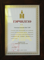 The Reliabile Tax Payer award honors TDB by National Taxation Office of Mongolia for successfull tax payment and its contribution to the Government budget according to Mongolian Taxation law.