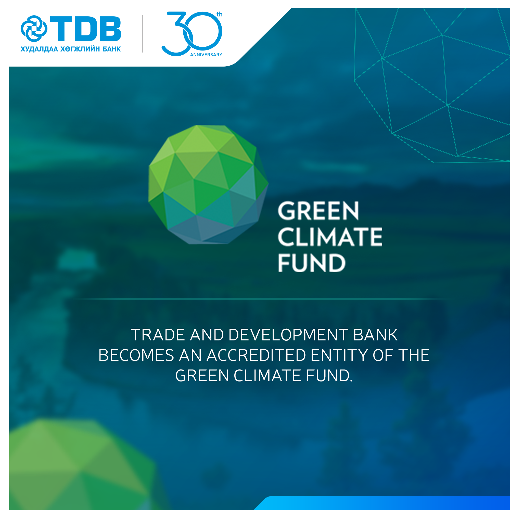 Green Climate Fund (GCF) Board has approved Trade and Development Bank of Mongolia as Accredited Entity