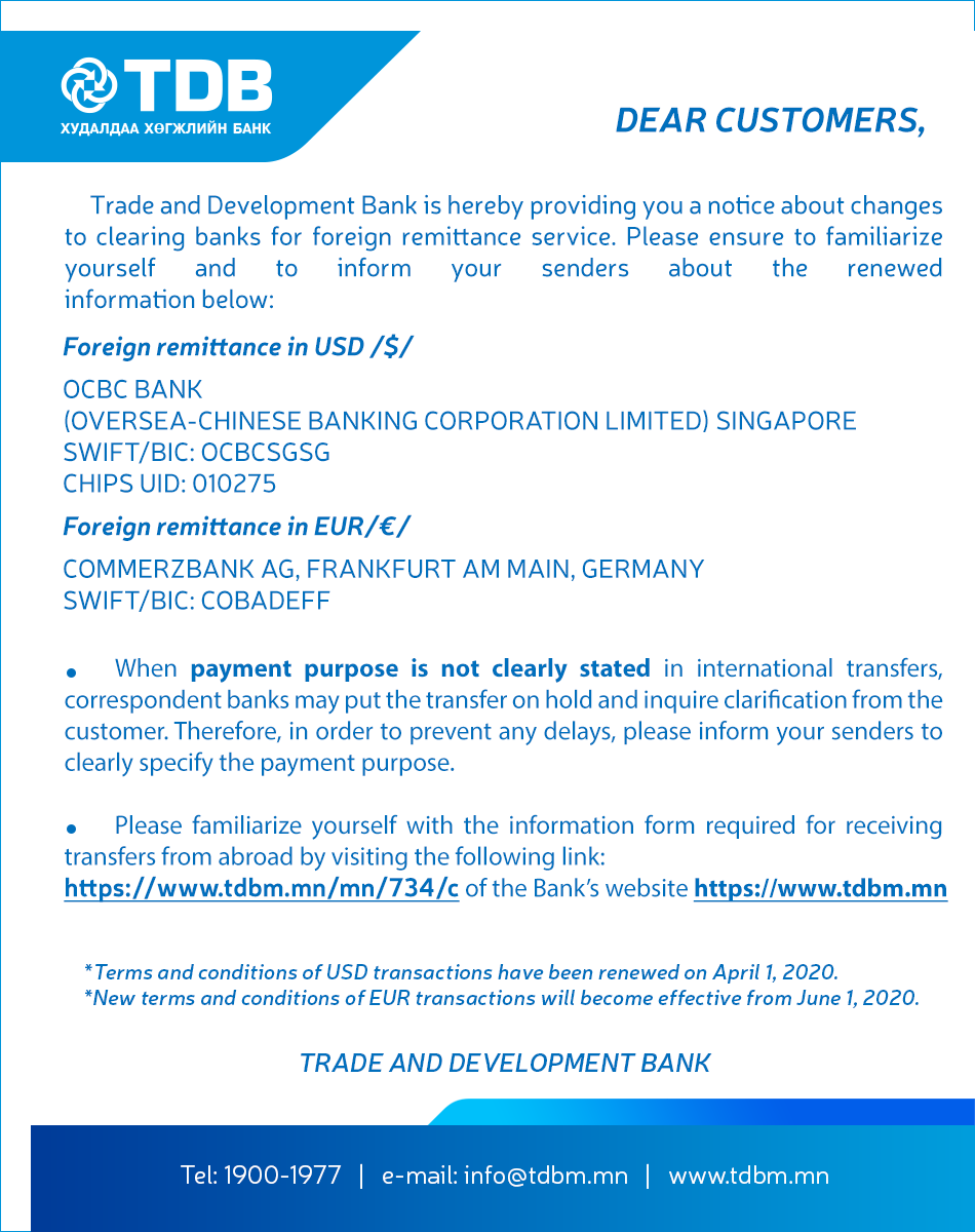 Trade and Development Bank and Ulaanbaatar City Bank, two systemically important banks of Mongolia have been consolidated