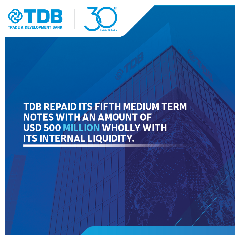 TDB repaid its fifth medium term notes with an amount of USD 500 million wholly with its internal liquidity