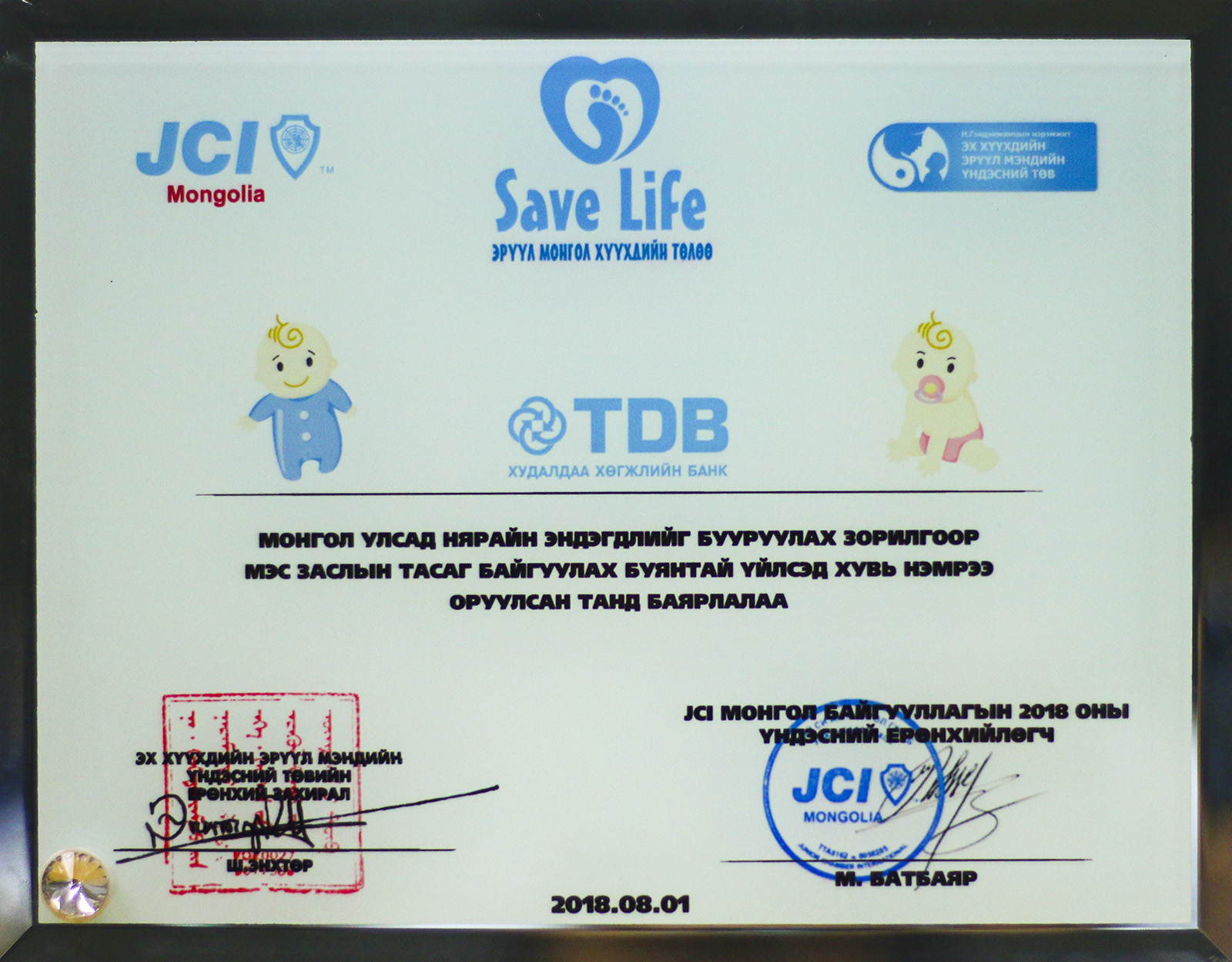 ХХБанк нийгмийн хөгжлийн төлөө JCI Mongolia байгууллагаас санаачлан зохион байгуулж буй НҮБ-ийн “Тогтвортой хөгжлийн 17 зорилго”-д чиглэсэн нярайн эндэгдлийг бууруулах зорилготой “SAVE LIFE” төслийн 2018 оны III шатыг дэмжин, дахин хамтран ажиллалаа.