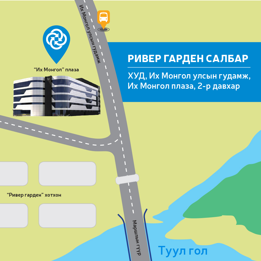 Та бүхэн Ривер Гарден салбарын чадварлаг, найрсаг хамт олноос банкны бүхий л үйлчилгээг тав тухтай орчинд урамшуулалтайгаар хүлээн аваарай.
