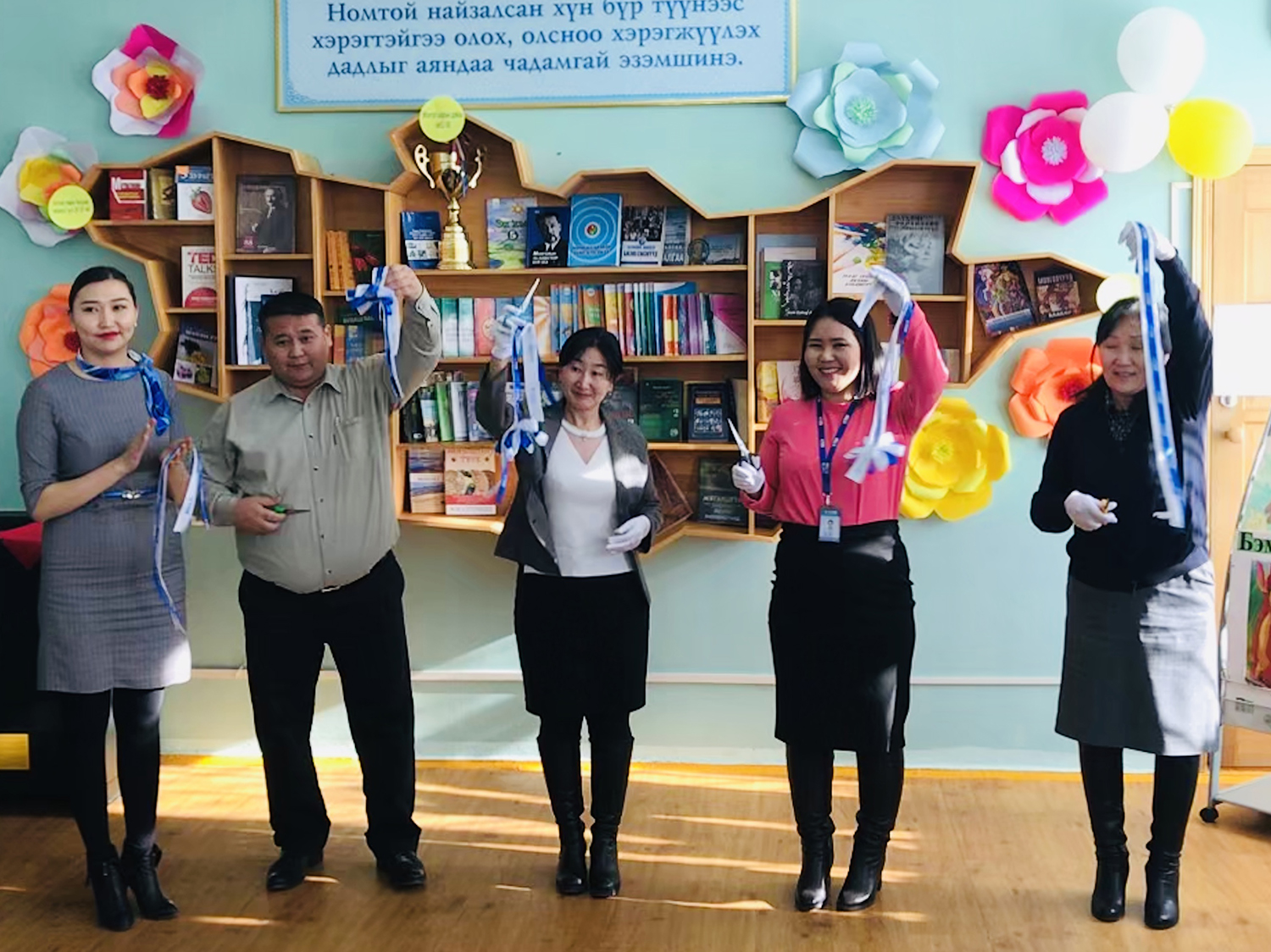 Номын сонголтыг сургуулийн багш, номын санчид өөрсдийн биеэр хийсэн учир сурагчдын сонирхол шаардлагад нийцсэн ухаалаг сонголт болсныг онцолж байсан юм. Номын тавиур нь Монгол улсын газрын зурагтай ижил хэлбэр дүрс бүхий байсан нь “Ухаан саруул, оюун тунгалаг, мэдлэг, боловсролтой Монгол хүүхдүүдийг төлөвшүүлэх, бэлтгэх” утга билэгдэл агуулсан төдийгүй, сурагч хүүхдүүдийн сонирхлыг татаж, олны нүдийг мялаасан сайхан бүтээл болж чадсанаараа онцлог байлаа.