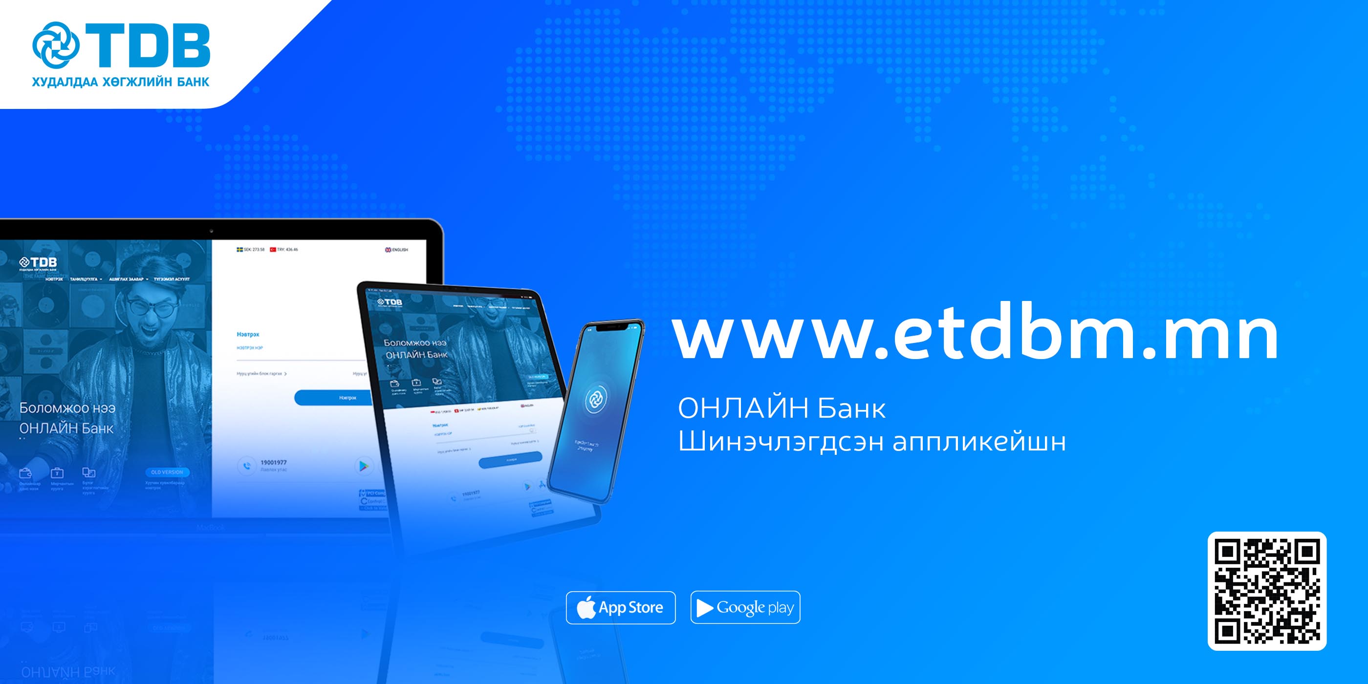Өнөө үед харилцагчид өөрийн хэрэгцээ шаардлагад нийцүүлэн орон зай, цаг хугацаанаас үл хамааран банкны бүхий л үйлчилгээг нэг дороос авах боломжтой онлайн банкийг сонгон үйлчлүүлж байна. Тэгвэл ХХБанкны шинэчлэгдсэн аппликейшн болон онлайн банкны www.etdbm.mn -ы үйлчилгээ нь харилцагчдад банкны үйлчилгээг цогц хэлбэрээр хүргэхээс гадна санхүүгийн 3 тулгуур болох банк, даатгал, үнэт цаасны нэмэлт үйлчилгээнүүдийг нэгтгэн Та бүхэнд хүрч байна.