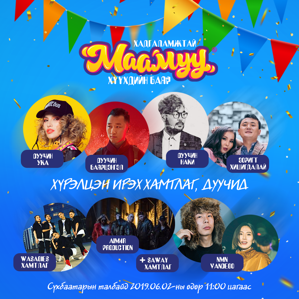 Хүндэт аав ээжүүд Та бүхэн бяцхан хүүхэд, багачуудынхаа хамтаар, ерөнхий боловсролын сургуулийн сурагчид Та бүхэн анги хамт олноороо, найз нөхдөөрөө энэхүү баярт хүрэлцэн ирж нэг өдрийг санаанд оромгүй гэнэтийн бэлгүүд, хамтлаг дуучдын уран бүтээл, Хүүхэлдэйн театр, Үндэсний циркийн үзүүлбэрүүдийг үзэж сонирхохоос гадна супер сугалааны азтан болж мартагдахааргүй сайхан дурсамжуудтай хамтдаа тэмдэглэн өнгөрүүлэхийг урьж байна.