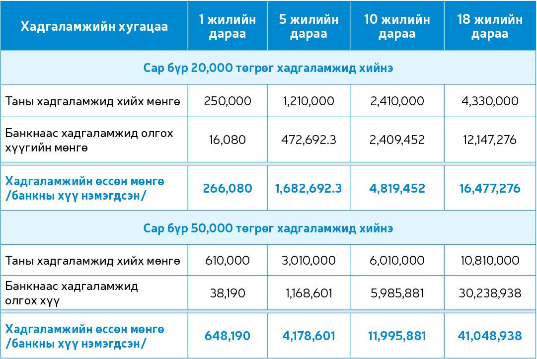Худалдаа, хөгжлийн банкны Хүүхдийн хадгаламжийн жишээ тооцоололтой танилцана уу.