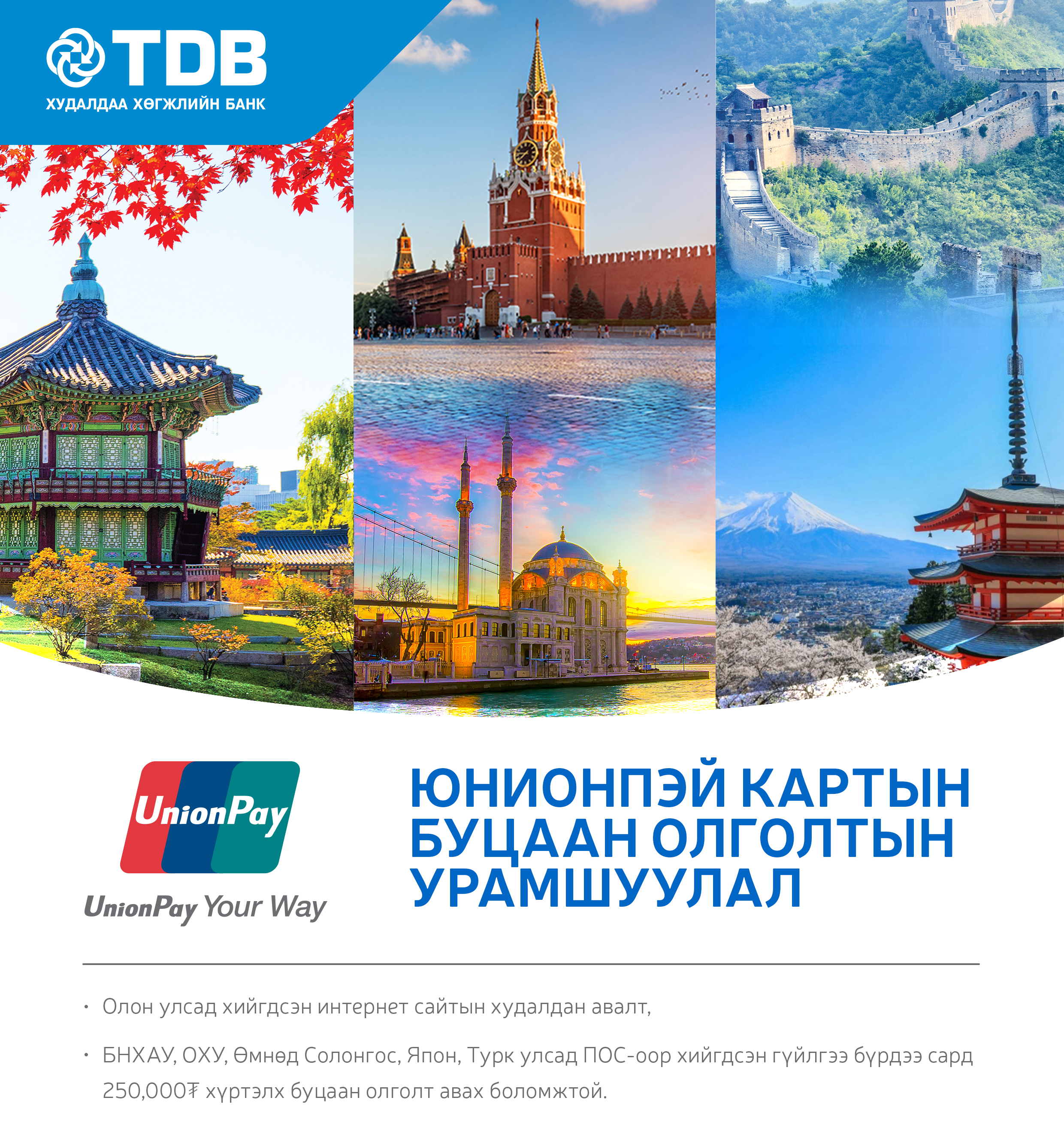 Харилцагч Та Юнионпэй картаараа: