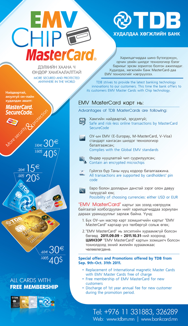 Харилцагчиддаа шинэ бүтээгдэхүүн, орчин үеийн шилдэг технологиор бэлэг барихыг эрхэм зорилгоо болгон ажилладаг Худалдаа, хөгжлийн банк Мастер картдаа EMV технологийг нэвтрүүллээ.