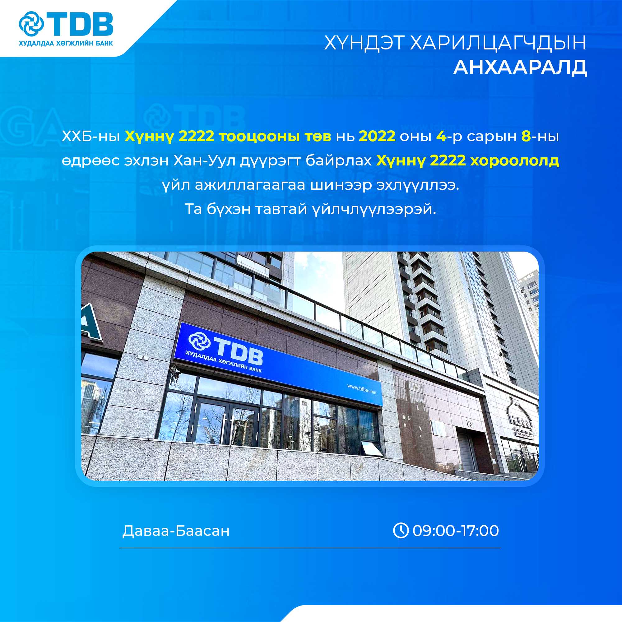 Хүннү 2222 тооцооны төв үйл ажиллагаагаа шинээр эхлүүллээ