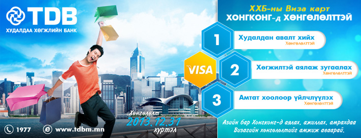Азийн бар Хонгконг улсад аялах, ажиллах, амрахдаа ХХБ-ны ОУ-ын ВИЗА картаараа ХӨНГӨЛӨЛТ эдэлдэг боллоо. Танд олгож буй боломжууд:
