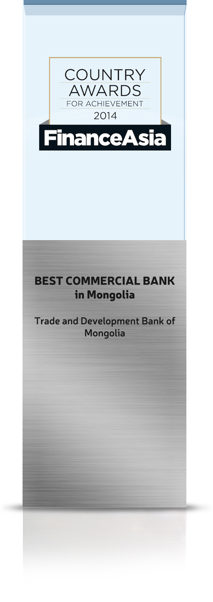Азийн санхүүгийн мэдээллийг мэргэжлийн түвшинд олон улсад түгээдэг Finance Asia сэтгүүлийн Банк санхүүгийн шилдгүүдийн шалгаруулалтад Ази тив төдийгүй дэлхий нийтийн банк санхүүгийн салбарынхан анхаарал хандуулдаг. Тус сэтгүүлийн 2014 оны шалгаруулалт өнгөрөгч долоо хоногт болж, Азийн шилдэг банк санхүүгийн байгууллагууд өрсөлдөж, Шилдгийн шилдгүүд шалгарснаас Монгол улсын Худалдаа, хөгжлийн банкинд 2014 оны “Best Commercial Bank in Mongolia” буюу “Монгол Улсын Шилдэг Арилжааны Банк” шагналыг Гүйцэтгэх захирал Б.Мэдрээд гардуулсан байна.