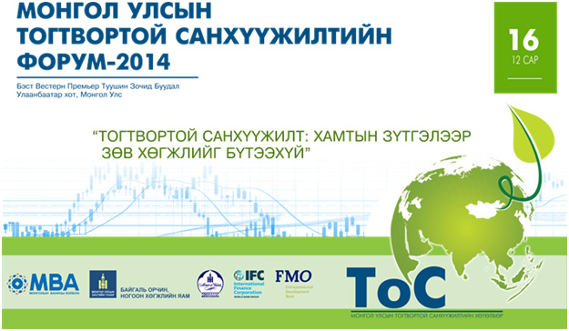 Монголын Банкны Холбооноос БОНХЯ, Монголбанк, Олон Улсын Санхүүгийн Корпораци, Нидерландын Хөгжлийн Банк болон гишүүн банкуудтай хамтран “Монгол Улсын Тогтвортой Санхүүжилтийн Форум 2014”-г “Тогтвортой санхүүжилт: Хамтын зүтгэлээр зөв хөгжлийг бүтээхүй” сэдэв дор 2014 оны 12 дугаар сарын 16-ны өдөр Улаанбаатар хотод зохион байгуулах гэж байна.
