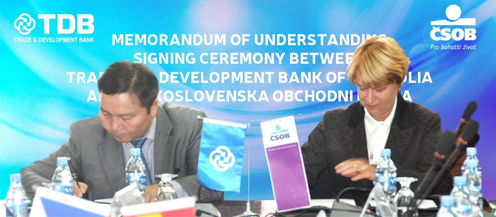 МҮХАҮТ, Чехийн Худалдааны Танхимтай хамтран 2015 оны 9 дүгээр сарын 22-ны өдөр зохион байгуулсан хоёр орны бизнес эрхлэгчдийн уулзалтын үеэр Худалдаа, хөгжлийн банк нь Ceskoslovenska obchodni banka -тай “Хамтран ажиллах санамж бичиг”-ийг үзэглэлээ. Уг санамж бичигт Худалдаа, хөгжлийн банкийг төлөөлөн Гүйцэтгэх захирлын орлогч С.Оргодол, Ceskoslovenska obchodni banka-г төлөөлж Экспортын санхүүжилтийн газрын захирал Дагмар Дворакова нар гарын үсэг зурлаа.