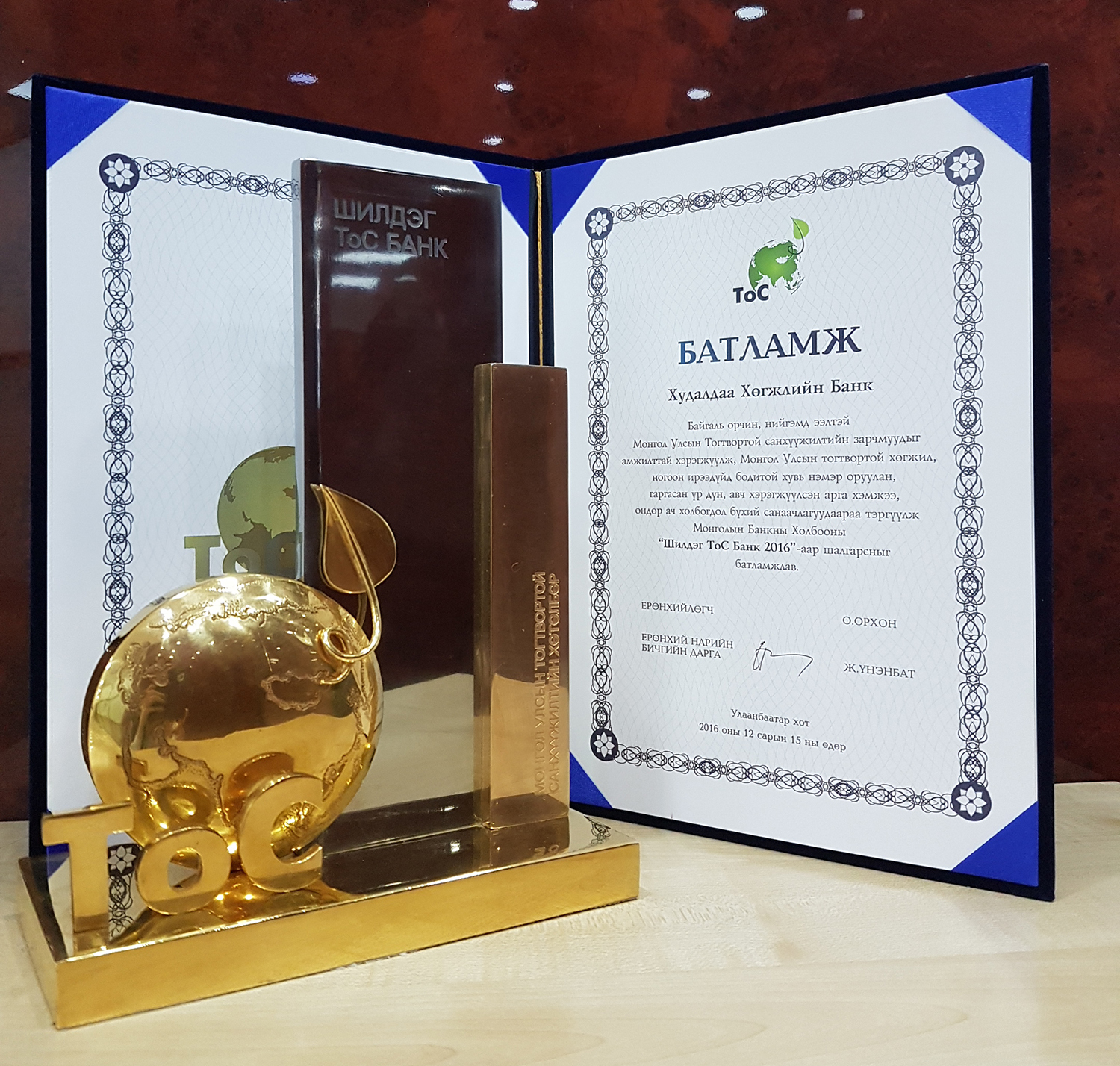 Монголын Банкны Холбоо 2015 оноос “Монгол Улсын Тогтвортой Санхүүжилт (ТоС)-ийн хөтөлбөр”-ийн хүрээнд “Байгаль Орчин, Нийгмийн Эрсдэлийн менежментийн систем”-ийг үйл ажиллагаандаа нэвтрүүлж, эх орныхоо тогтвортой хөгжилд үнэтэй хувь нэмэр оруулж буй банкуудаас “Шилдэг ТоС Банк”-ийг шалгаруулж эхэлсэн. 2016 оны 12-р сарын 15-ны өдөр зохион байгуулагдсан Монголын Банкны Холбооны XI-ээр чуулганы үеэр ХХБанкыг 2016 оны “Шилдэг ТоС Банк”-аар шалгаруулж, шагналаа. Энэ нь ХХБанкны 2016 онд “ТоС хөтөлбөр”-ийн хүрээнд хийсэн ажлууд болон БОНЭМС-ийн хэрэгжилтийг өндрөөр үнэлэн олгож буй нэр хүндтэй шагнал юм.
