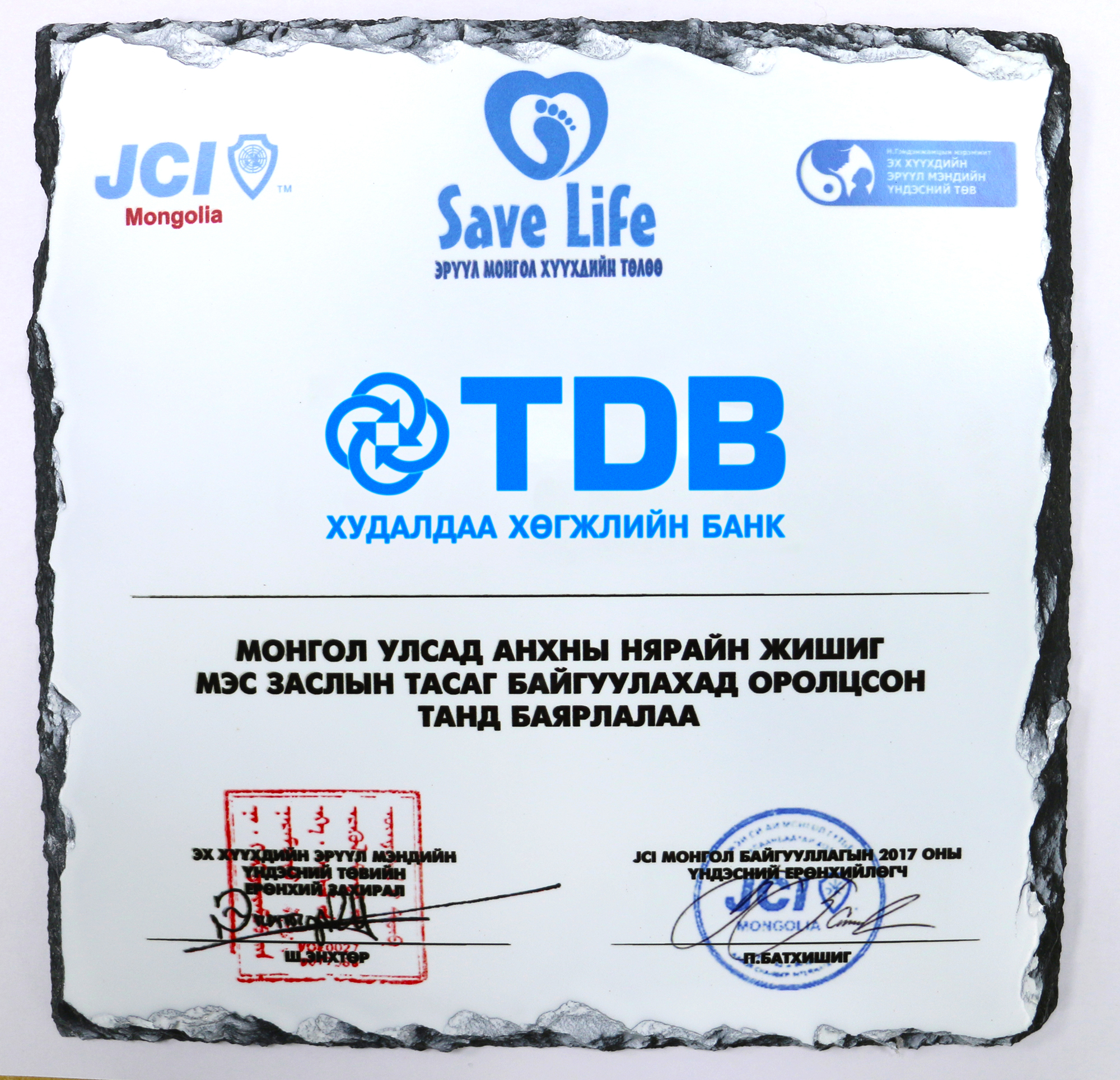 Нийгмийн хөгжлийн төлөө JCI Mongolia байгууллагаас зохион байгуулж буй НҮБ-ийн “Тогтвортой хөгжлийн 17” зорилгод чиглэсэн нярайн эндэгдлийг бууруулах зорилготой “Save Life” төслийг ХХБанк дэмжин, хамтран ажиллалаа. 2016 оны байдлаар энэхүү төслийн хүрээнд Монгол улсын нярайн эндэгдэл түүхэндээ анх удаа 19.1%-иас 5.6% хүртэл буурсан байна. Нярайн мэс заслыг зөвхөн нярайд зориулсан өрөөнд, зориулалтын тоног төхөөрөмжөөр хийсэнээр хагалгааны үед болон хагалгааны дараа гарах аливаа эрсдэлийг бууруулдаг бөгөөд өнөөдөр нээлтээ хийж буй энэхүү тасаг нь Монголын хамгийн анхны олон улсын стандартад нийцсэн 0.5-3.5 кг жинтэй, 28 хүртэлх хоногтой нярайн мэс заслын орчинг бүрдүүлсэн тасаг юм.